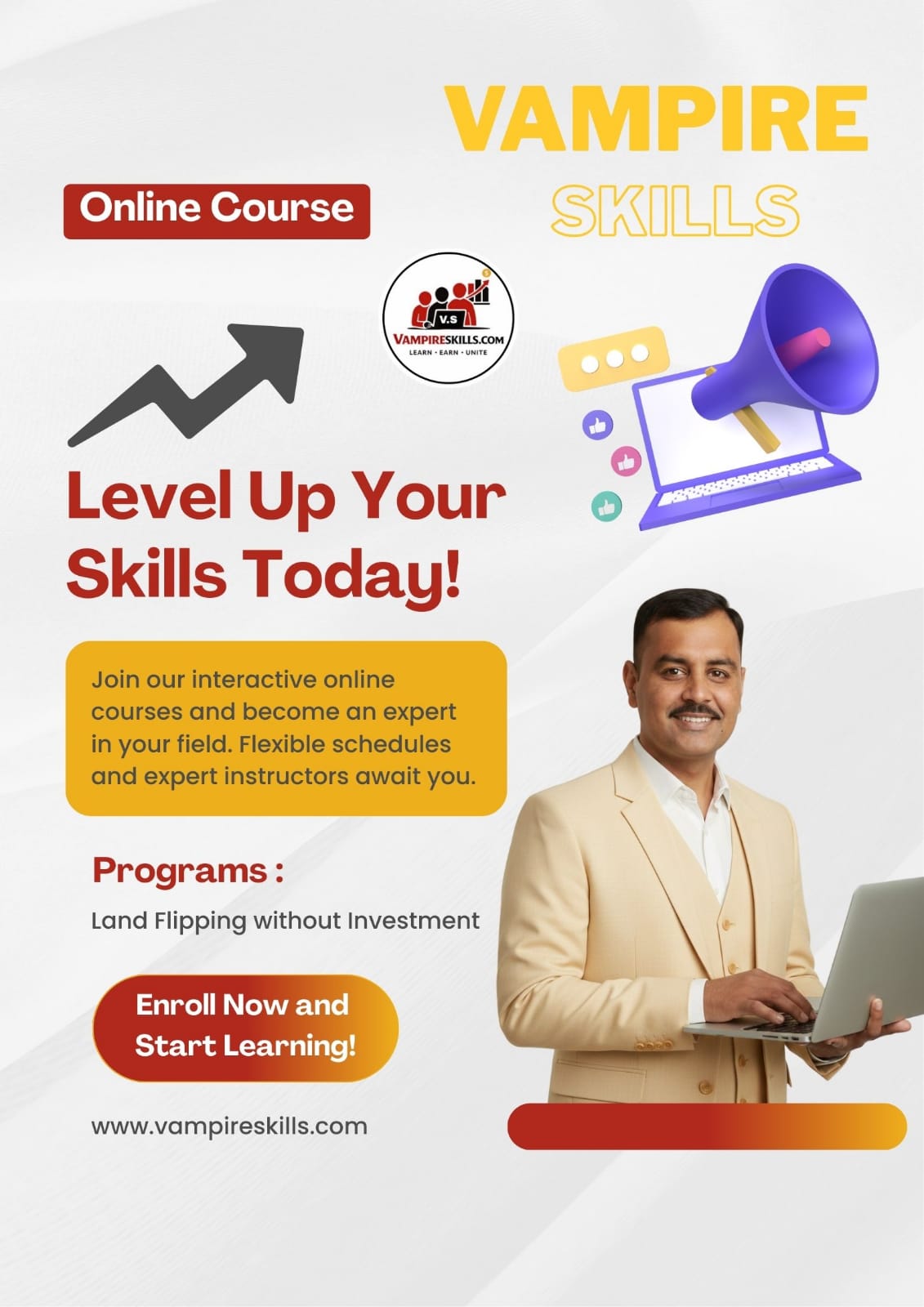 VampireSkills is a modern education platform focused on land flipping, crypto, Shopify, and Amazon for smart, asset-driven income.